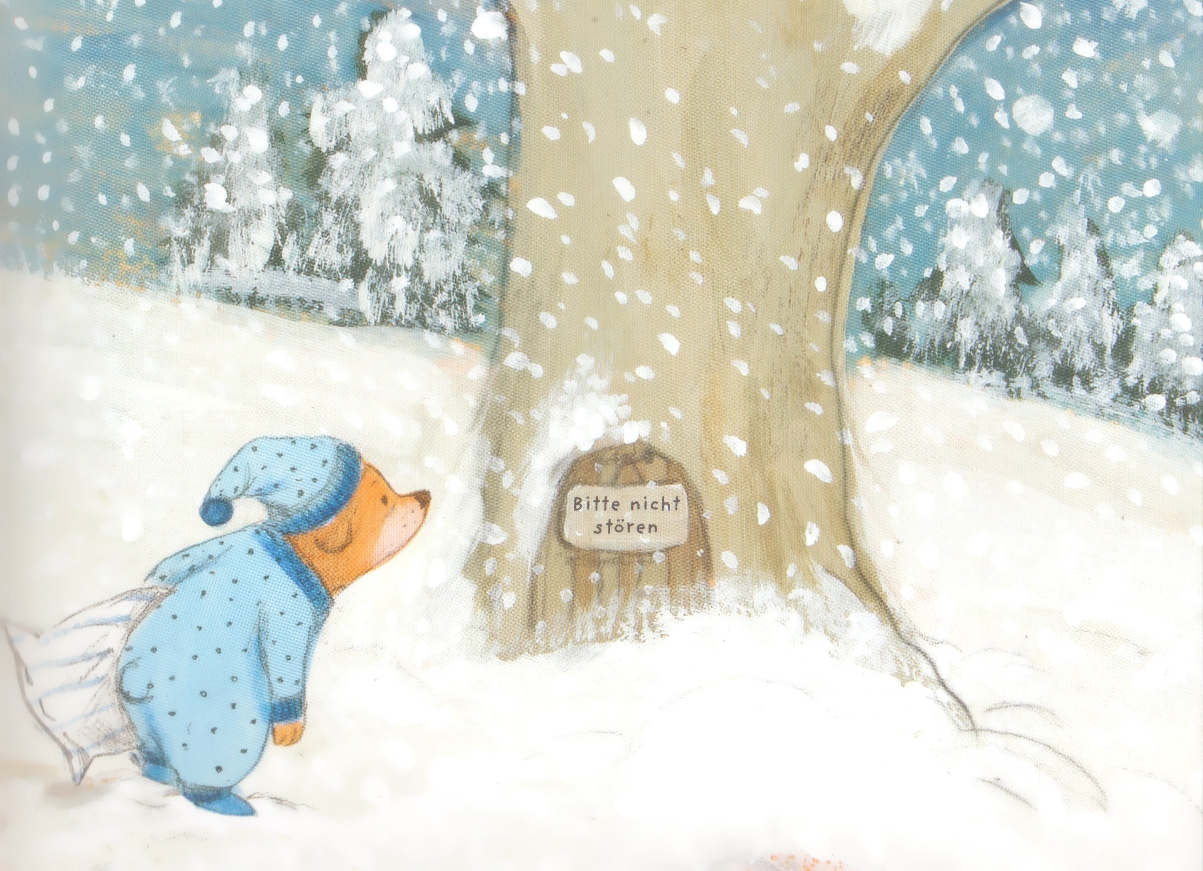 „Der kleine Bär möchte schlafen“ wie die anderen Bären. Schließlich war es Winterschlafzeit. Doch das Bärenkind war wach. Also kroch es aus der Höhle und stapfte los. Die Nachbarn im Wald schliefen ebenfalls. Also stapfte der Bär weiter und erreichte eine große Stadt. Wird dort auch geschlafen?
